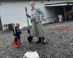 Now that I have a newborn, life has transformed once again. Yes, I can reach the ground a whole lot better , but now I have the added challenge of juggling four young kids, with homeschooling and other activities barreling on, and homestead chores continuing. Not to mention thanksgiving and family in town!